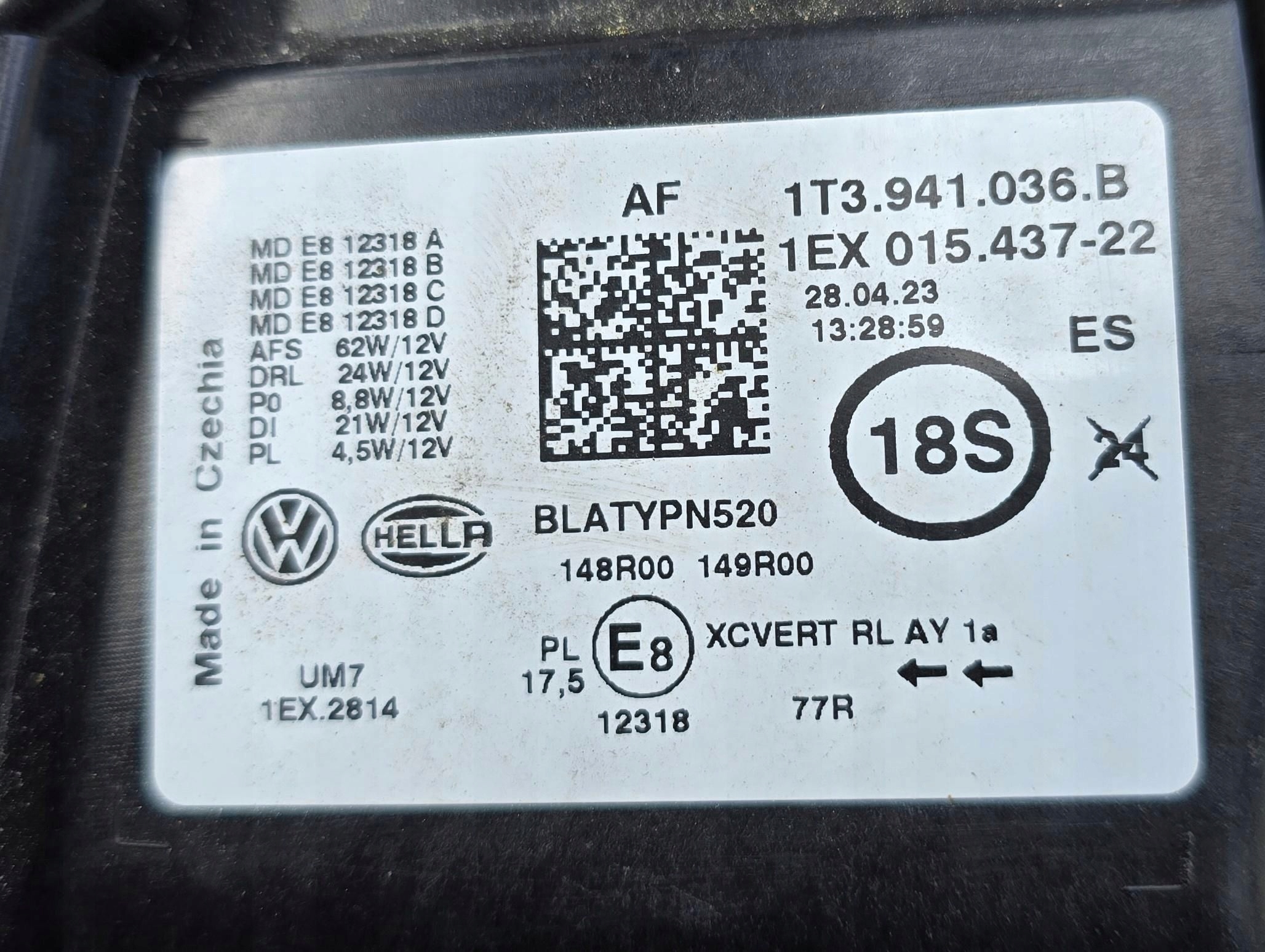 Be the first to review “LAMPA PRAWA PRZEDNIA PRZÓD FULL LED VW ID BUZZ 1T3941036B”